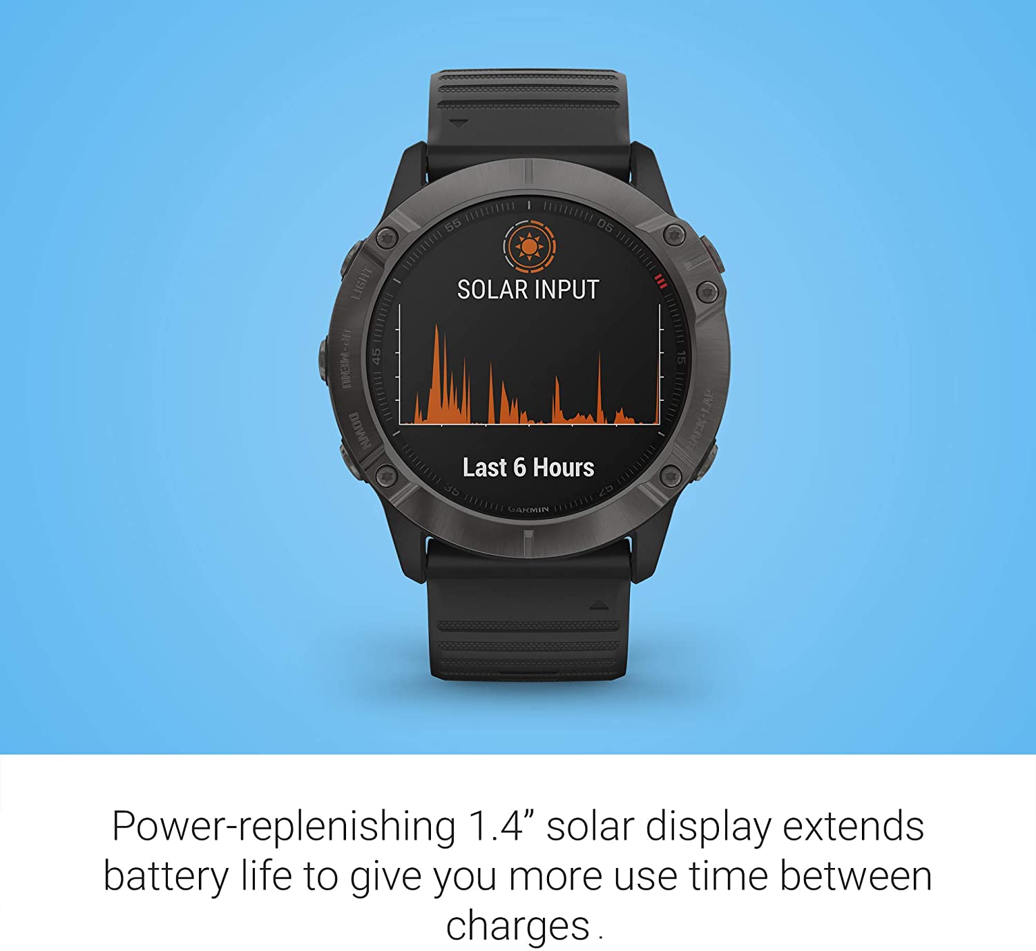 El fēnix 6X Pro Solar, el primero de nuestros relojes con función de carga solar, elimina los límites de hasta dónde puedes llegar. La lente Power Glass™ de 1,4” utiliza la luz del sol para alargar la autonomía de la batería en tus aventuras por lugares sin energía eléctrica.